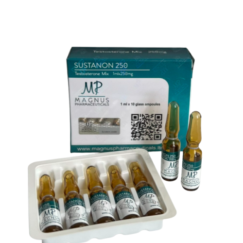 Magnus Pharmaceuticals — бренд із репутацією надійного постачальника спортивної фармакології фармацевтичного рівня. Sustanon 250 в ампульному форматі — це класична суміш чотирьох ефірів тестостерону від виробника, що працює за стандартами GMP.